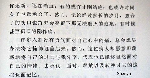 有过‘有时候的隐隐作痛’ 的人 也更能了解与帮助那些伤口淌着血还在痛的人。