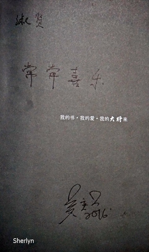 问了我的名字,签了名。那一刻心里是激动的,可是却不能表现得太明显因为觉得自己的举动太不寻常。