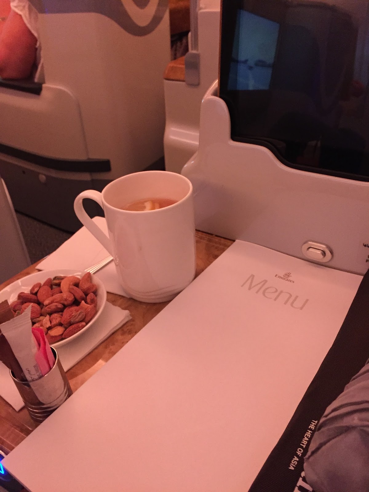 The flight was slightly delayed by 30 minutes, so by the time I settled down, it was already almost 12am! Amazingly, it is the time for them to serve dinner! Being in business class, there is this menu of fine dining where you get to choose your meal from appetizer to desserts but too bad my motion sickness was pretty bad even after medications so I didn’t really get to enjoy the food! đ