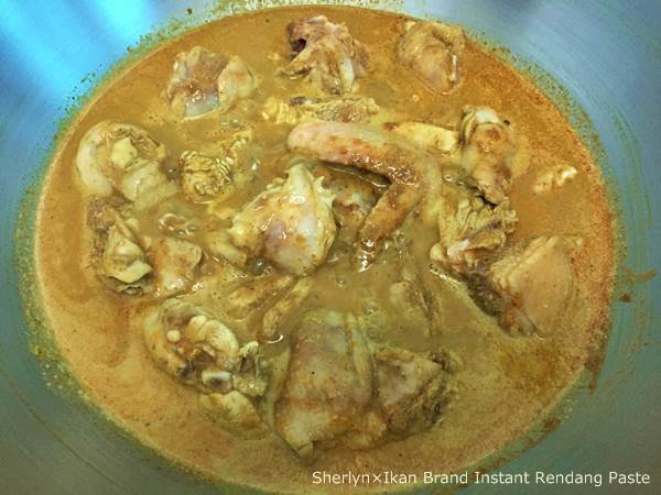 2) Add in water and coconut milk to simmer until chicken is tender and gravy become thicker. (Approximate 30 minutes)