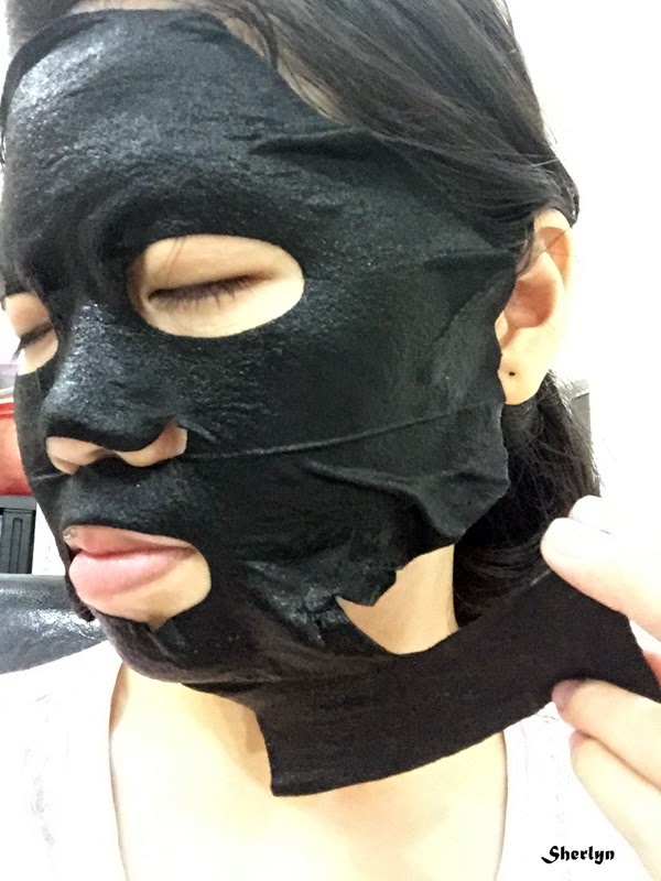 After using the mask, I feel that the mask is elastic. It give a special cooling feeling. The mask size is just right and it covered my neck as well. It adheres to skin well and never drop when I moved around to take pictures. The mask is rich with serum. My skin feel hydrated especially the cheek areas.